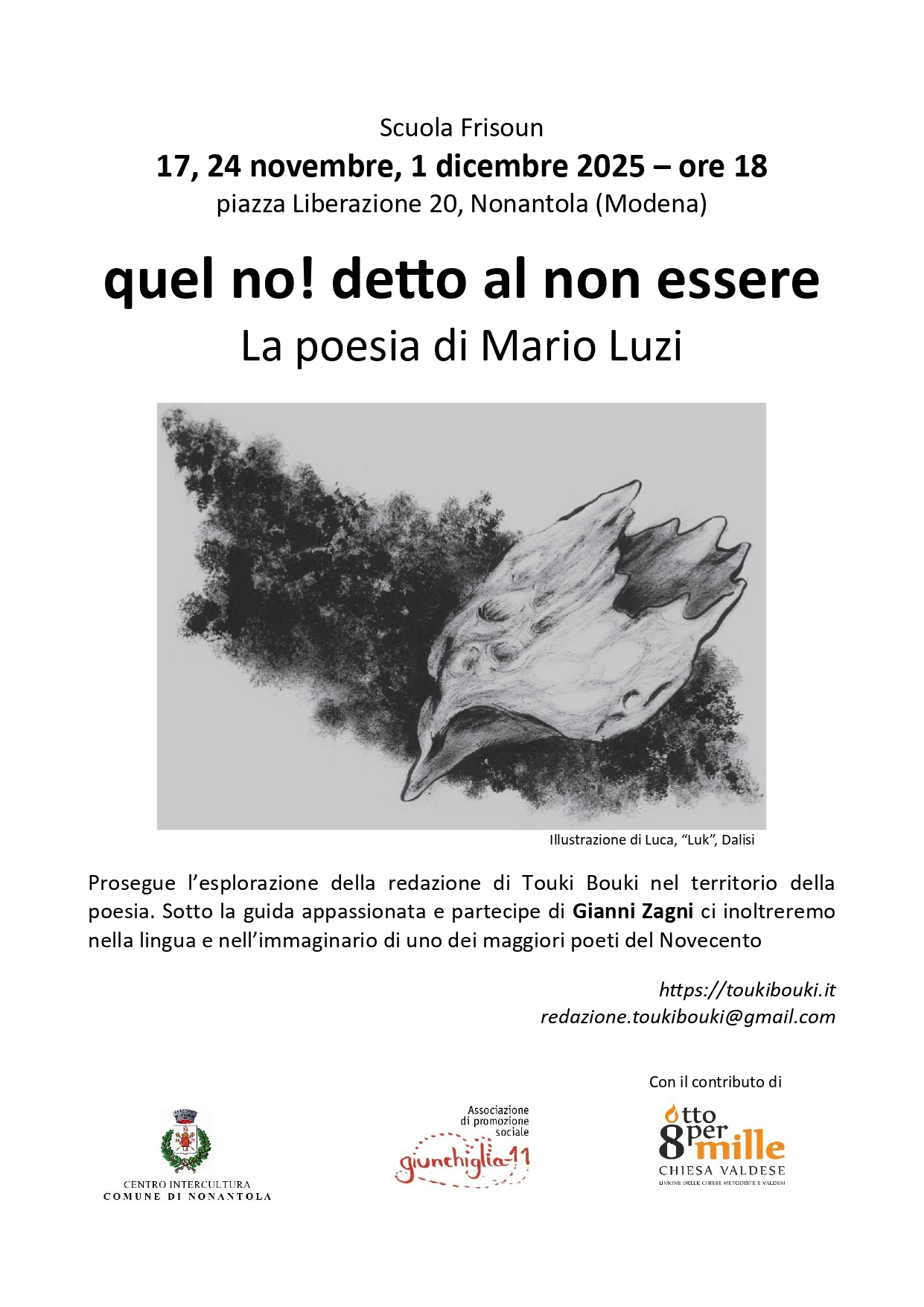 La redazione di Touki Bouki apre anche ad amici e curiosi il breve ciclo di incontri di autoformazione sulla poesia di Mario Luzi. Il primo, lunedì prossimo, 17 novembre, alle 18.