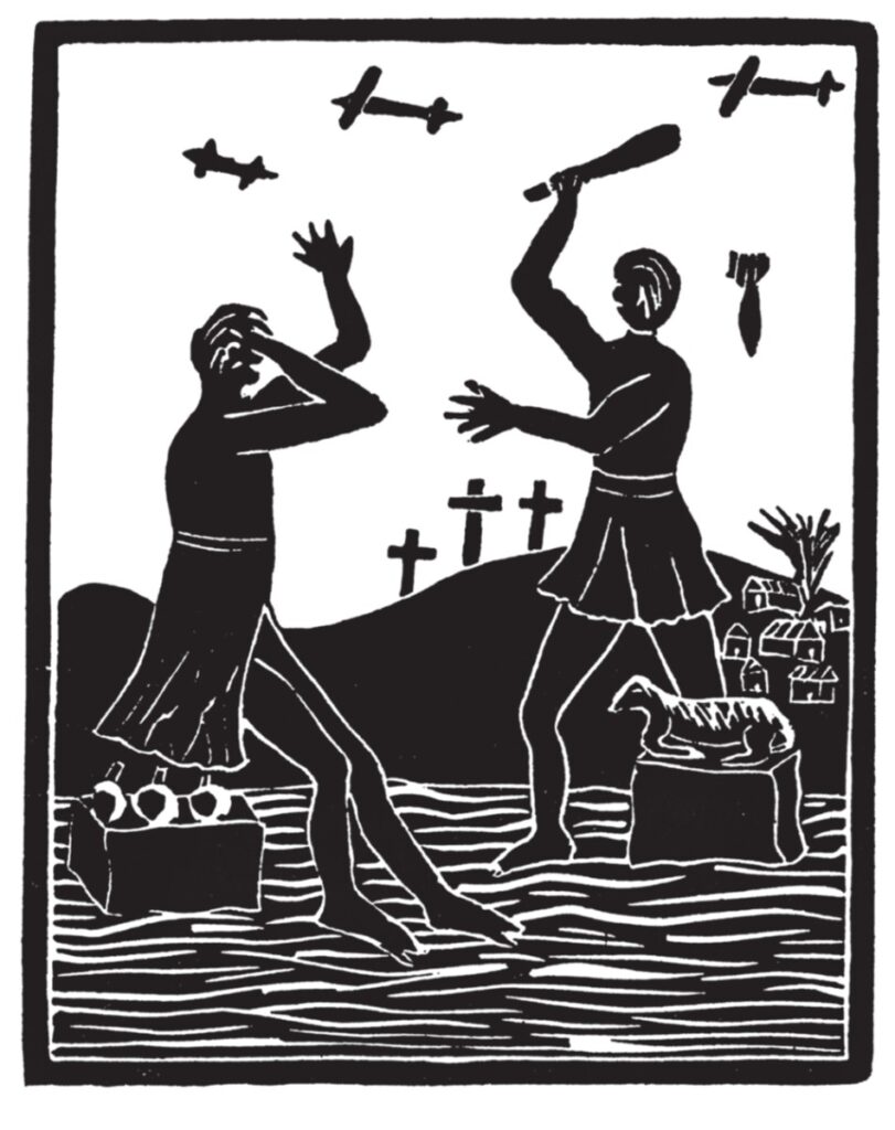 A guardare le illustrazioni del libro è facile notare una certa omogeneità del segno delle linoleografie, fatte tutte da mani diverse, ma simili nello stile e nello sguardo. Da che cosa è data questa omogeneità? Io penso sia il prodotto di due fattori: da un lato il lavoro cooperativo, che comportava una grande organizzazione degli spazi, dei tempi, dei materiali e perfino delle “economie” necessarie alla stampa e alla diffusione dei periodici dei bambini, e in seconda battuta la tecnica di stampa. La materia (le tavolette di linoleum) e gli strumenti (le sgorbie, i taglierini, il rullo di inchiostro) vincolano e al tempo stesso esaltano la creatività dei bambini fornendo all’immagine un ritmo in cui il lettore non riconosce la singola mano che l’ha prodotta, identificabile solo dalla sigla con cui Faè voleva che i piccoli incisori firmassero le loro opere. Quello che lo sguardo del lettore nota è invece una certa uniformità nella prospettiva, nella luce, negli sfondi, nel movimento delle linee. Questo potere della materia e della tecnica di vincolare e al tempo stesso esaltare la creatività è un anche grande insegnamento pedagogico, che anche maestri e insegnanti di oggi, sia di materie scientifiche che umanistiche, sarebbe bene tenessero presente.